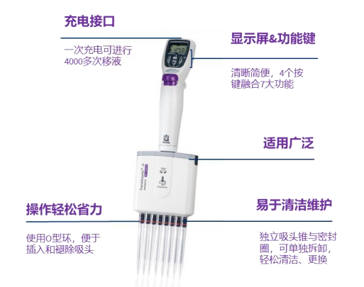 功能模式:移液模式,反向移液模式,混勻模式,連續分液模式,300uL及以下的電動移液器具有凝膠上樣功能模式。