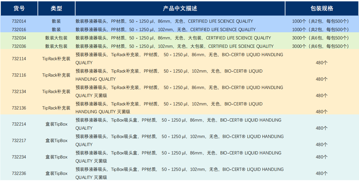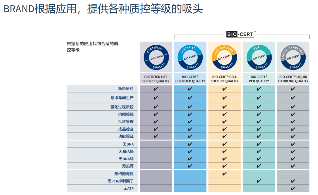 該商品有以下質量等級可供選購:認證生命科學質量和 BIO-CERT® 移液質量
