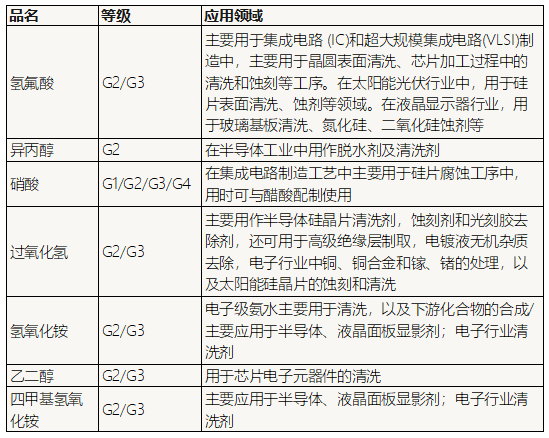 超凈高純(VLSD) 試劑是大規模集成電路(IC) 及高檔半導體器件制造過程的專用化學品,主要用于硅單晶片的清洗、光刻、腐蝕工序中,下游應用領域為半導體,光伏太陽能電池,LED和平板顯示。它的純度和潔凈度對集成電路的成品率、電性能、可靠性都有著重要的影響。