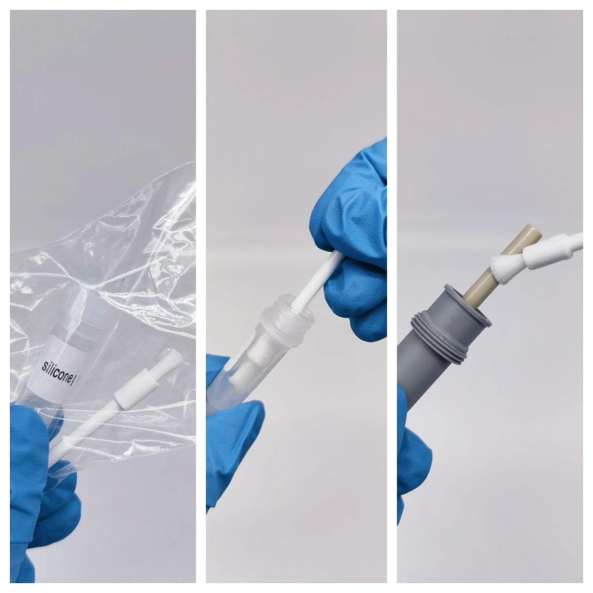 當所有零件經過干燥后,我們就可以給移液器“加油”了,取出包裝中附贈的硅脂和小刷子,為活塞和密封件涂上一層薄薄的硅脂。