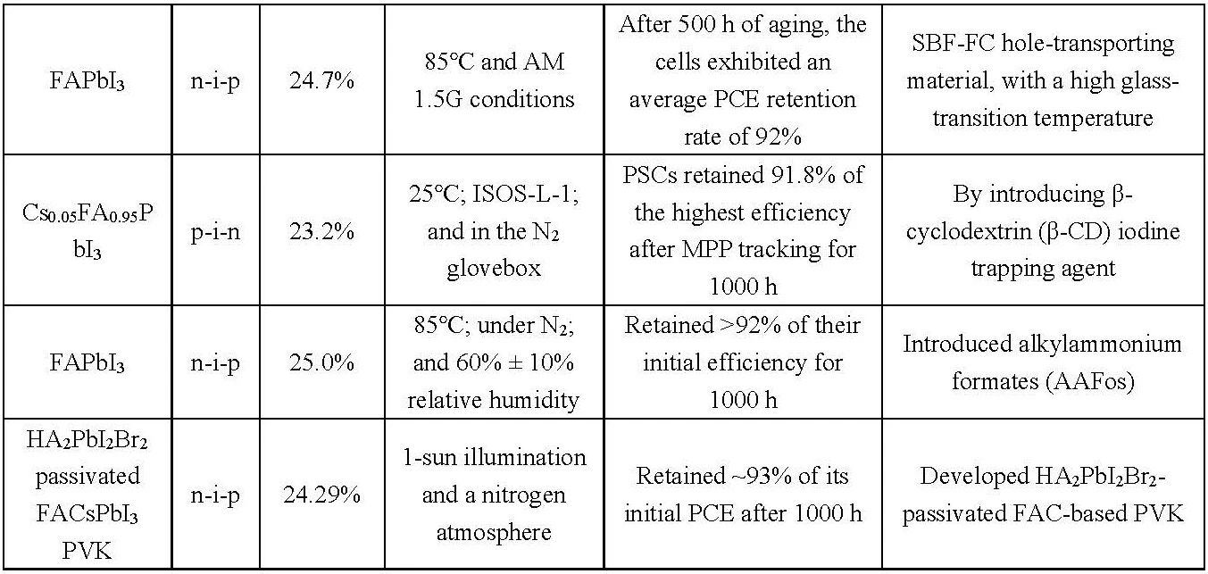 表3 2023年器件穩(wěn)定性研究進(jìn)展表
