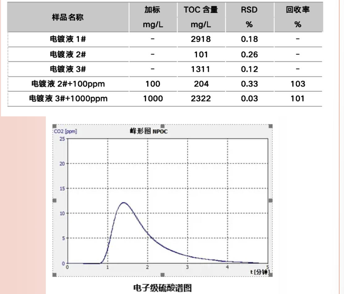 2.高濃度高鹽樣品:電鍍液中高TOC濃度與高鹽含量的干擾