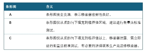 靜態測試時無需按壓移液鍵,即活塞不移動,這僅能用于確定整個移液器系統是否存在泄露,無法判斷是否活塞組件的問題導致泄露。