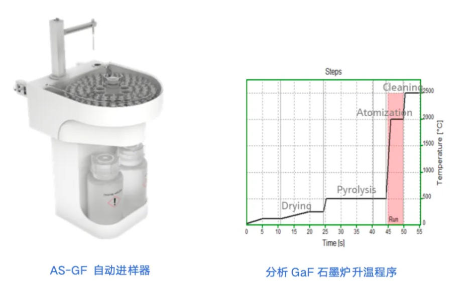 MAS是基于通過原位形成氟化鎵(GaF)分子對氟進行檢測,由德國耶拿連續(xù)光源原子吸收光譜儀contrAA800(高分辨率石墨爐原子吸收光譜法)檢測。